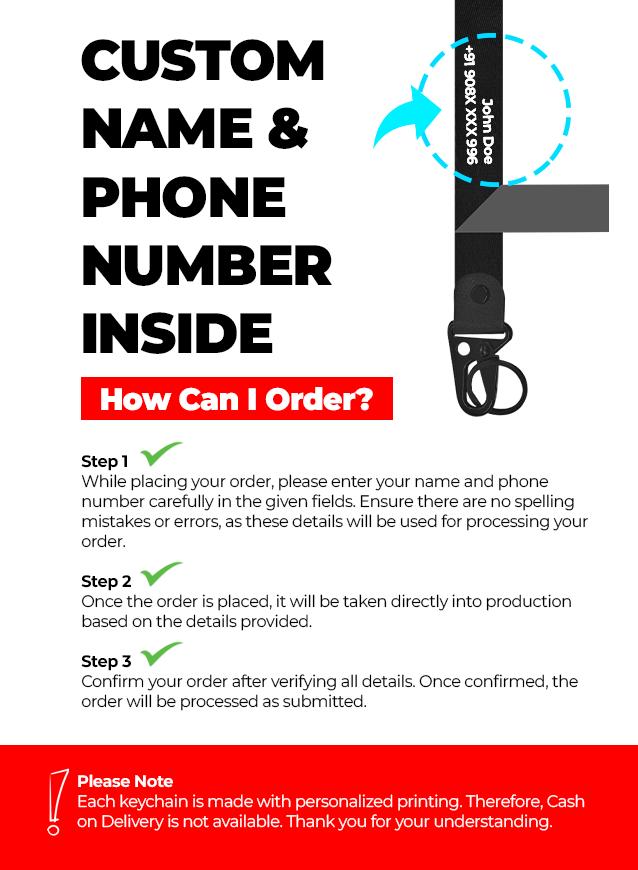 ✅ Custom Printed with Name & Contact Number
